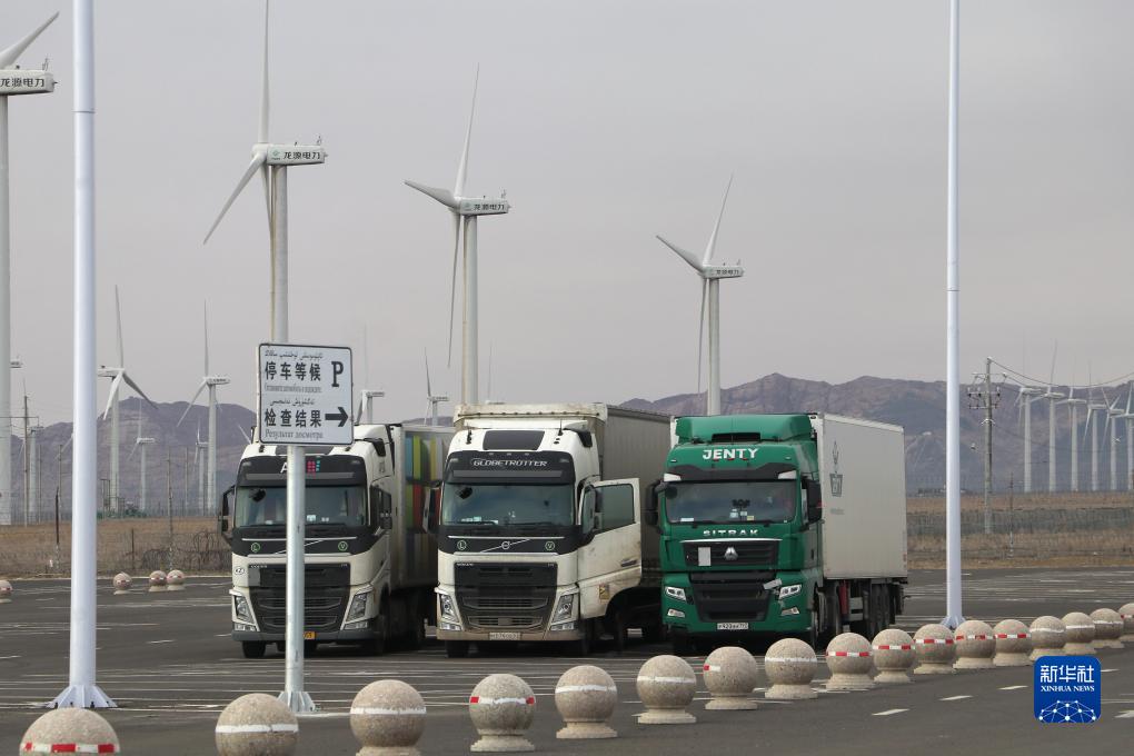11月5日,入境貨車在阿拉山口公路口岸停車場等待檢查結果。新華社記者 趙晨捷 攝