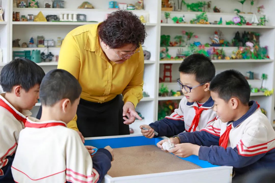 心理教師在心理輔導(dǎo)室陪學(xué)生一起擺放沙盤(pán) / 陳為 攝