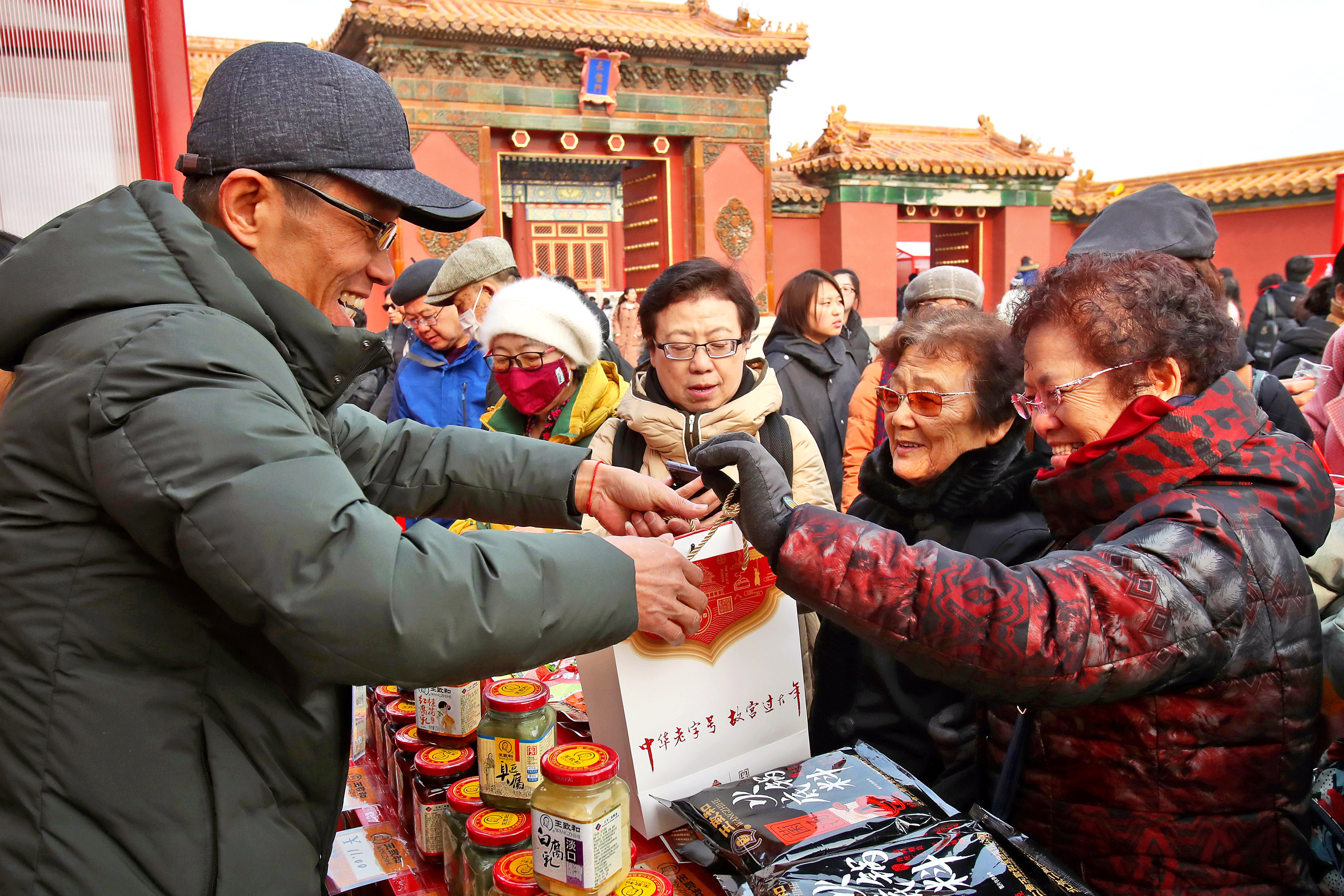 老年游客在故宮選購旅游商品。