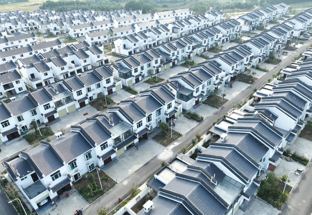 ↑建設(shè)完工的湖北省沙洋縣沈集鎮(zhèn)帥店新社區(qū)(9月7日攝,無人機(jī)照片)。沙洋縣沈集鎮(zhèn)全域國土綜合整治項(xiàng)目著眼于耕地碎片化、空間布局無序化、資源利用低效化、生態(tài)質(zhì)量退化等問題,打造集約高效的生產(chǎn)空間、宜居適度的生活空間、山清水秀的生態(tài)空間。