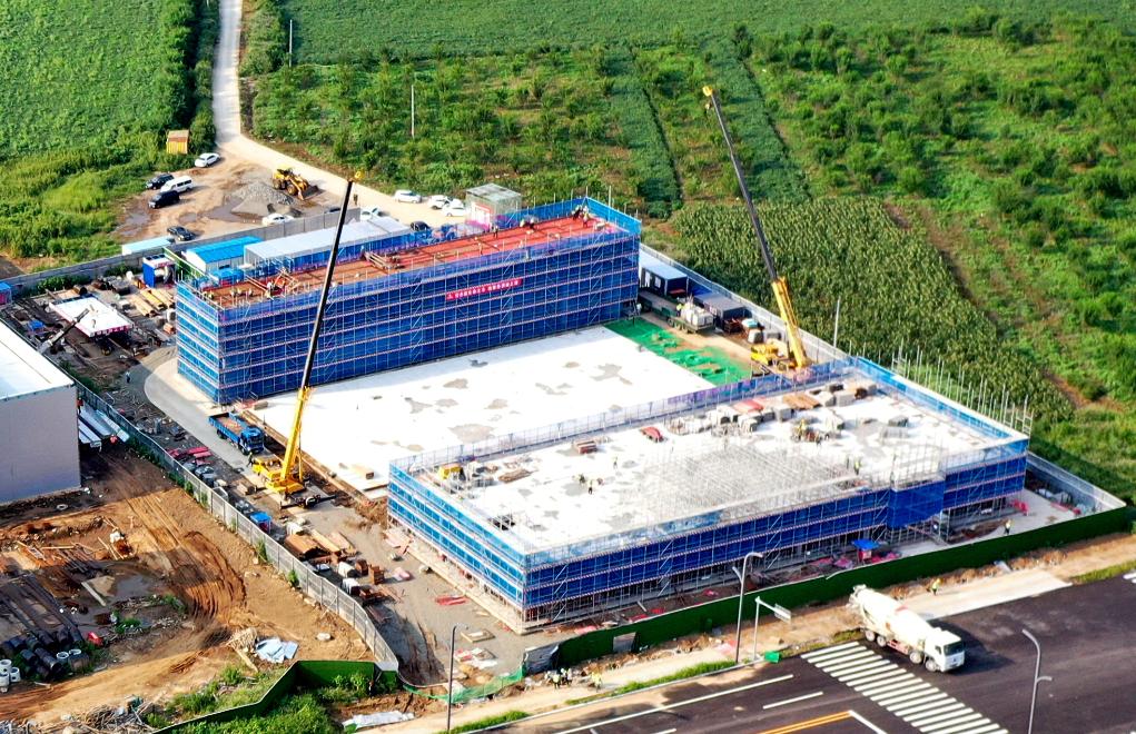 在沈陽(yáng)市鐵西區(qū)拍攝的德國(guó)賀利氏特種光源項(xiàng)目建設(shè)現(xiàn)場(chǎng)(2023年8月28日攝,無(wú)人機(jī)照片)。新華社記者楊青 攝