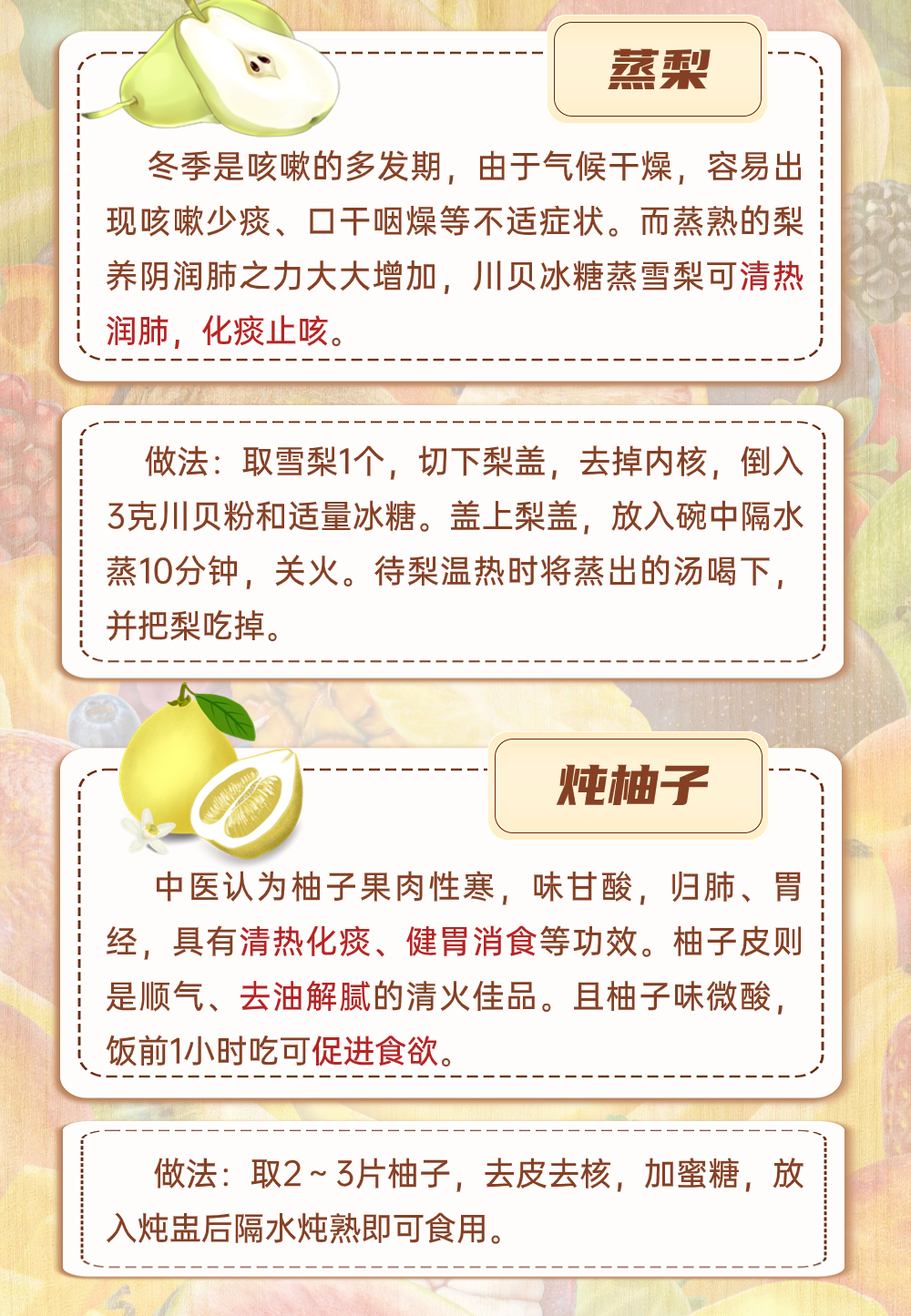 那么,應該怎樣蒸水果呢?不同水果蒸著吃,對健康有哪些好處呢?請收好這份蒸水果食譜。(記者 雷妍 實習記者 王佳路)