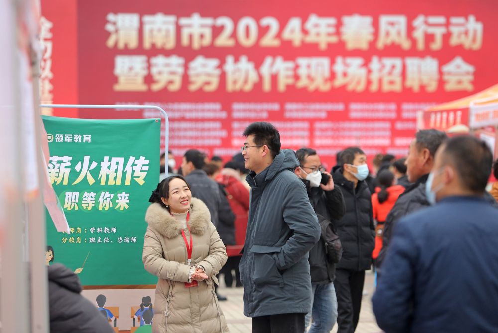 2月19日,求職者在陜西省渭南市2024年“春風(fēng)行動(dòng)”暨勞務(wù)協(xié)作現(xiàn)場(chǎng)招聘會(huì)了解企業(yè)招聘情況。新華社發(fā)(崔正博攝)
