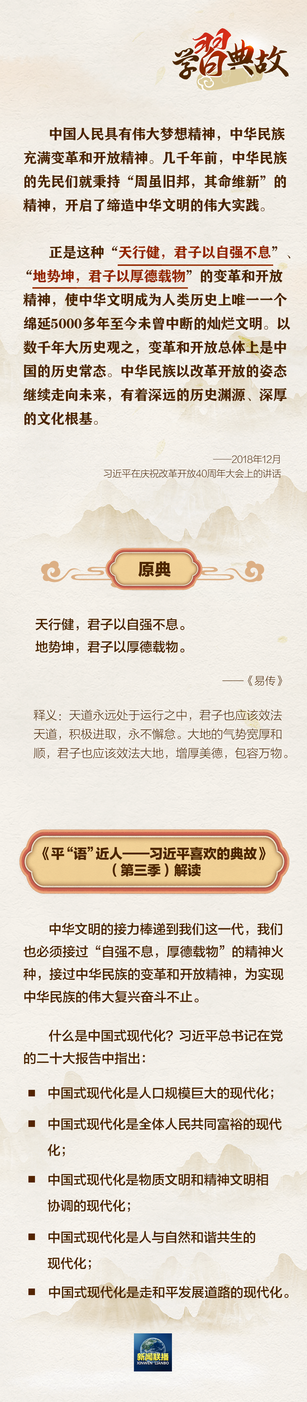 在黨的二十大報告中,習(xí)近平總書記指出:“從現(xiàn)在起,中國共產(chǎn)黨的中心任務(wù)就是團(tuán)結(jié)帶領(lǐng)全國各族人民全面建成社會主義現(xiàn)代化強(qiáng)國、實(shí)現(xiàn)第二個百年奮斗目標(biāo),以中國式現(xiàn)代化全面推進(jìn)中華民族偉大復(fù)興。”圍繞“以中國式現(xiàn)代化全面推進(jìn)中華民族偉大復(fù)興”,總書記曾講到哪些典故?一起學(xué)習(xí)↓↓↓