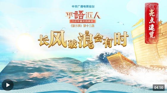 2月29日,《平“語”近人——習(xí)近平喜歡的典故》(第三季)播出第十二集《長風(fēng)破浪會有時》。