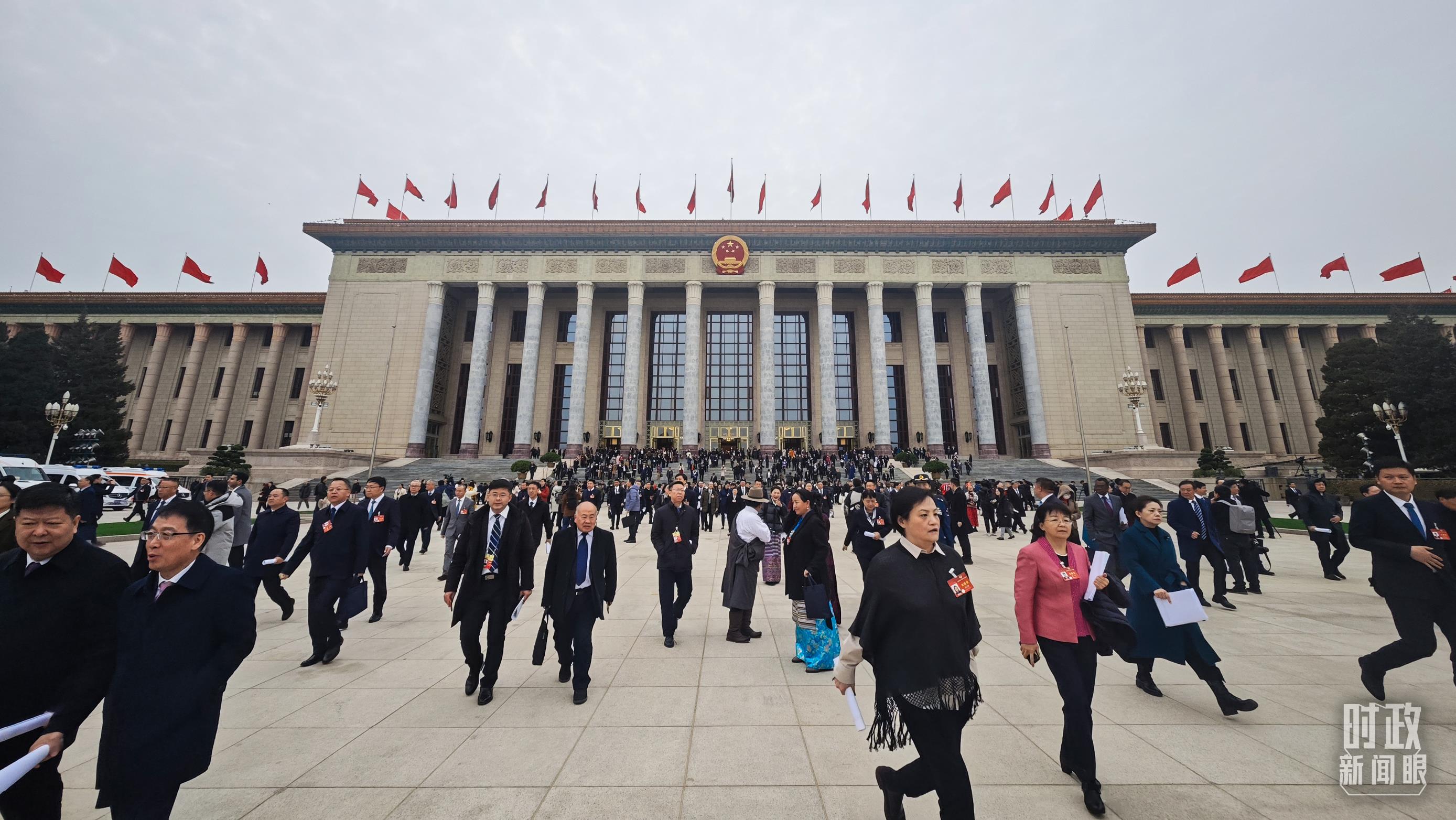 △3月4日,人民大會(huì)堂,政協(xié)委員們在開幕會(huì)后離場。(總臺(tái)央視記者彭漢明拍攝)