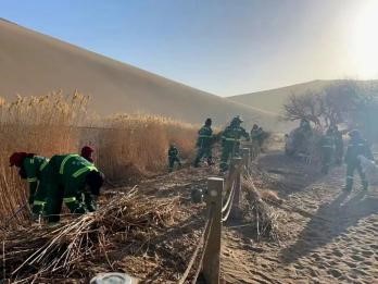 西部決策網(wǎng)訊(記者帥華鋒 通訊員 田雅杰)蘆葦作為守護(hù)鳴沙山月牙泉的生態(tài)“守衛(wèi)”,不僅為月牙泉沿岸增添了風(fēng)景線,還具有凈化泉水水質(zhì)的功能,春季蘆葦枯敗,易腐爛致泉水變臭、底泥淤積,造成環(huán)境污染,影響景區(qū)風(fēng)貌。