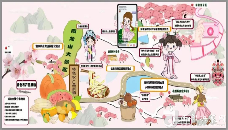 為了分散人流,增加游覽舒適度,今年推出了四條賞花線路,分別是:洛峪村桃花嶺、藏龍山景區(qū)(秀水山莊)、青渠村石羊磨和山居小齊農業(yè)體驗園。其中,洛峪桃花源為主要賞花點。四個賞花點均能看到獨具特色的野山桃漫山遍野盛開的景觀,為大家準備了各式各樣的古風打卡點,都是不錯的選擇,在藏龍山秀水山莊你還能品嘗到獨具特色的農家美食,在山居小齊農業(yè)體驗園可以跟網紅互動交流等等。